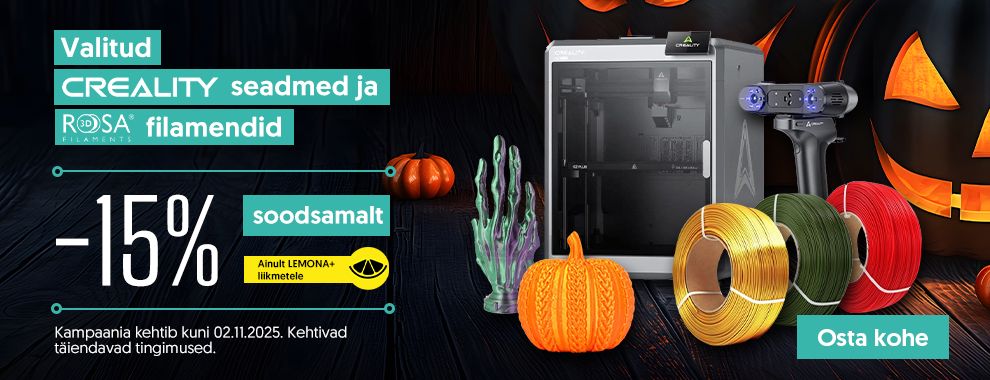 Miks valida LEMONA electronics? Kuni 2. novembrini saad ROSA3D printimisfilamendid ja valitud CREALITY 3D-printerid, skannerid ning lasergraveerimis- ja lõikusseadmed kuni -15% soodsamalt!