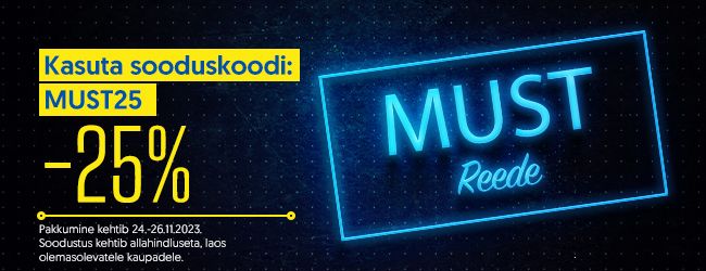 Kasuta allahindluskoodi MUST25, mis annab kõikidele allahindluseta kaupadele -25% hinnaalanduse. Pakkumine kehtib vaid laos olevatele allahindluseta kaupadele, allahindlusi ei summeerita.