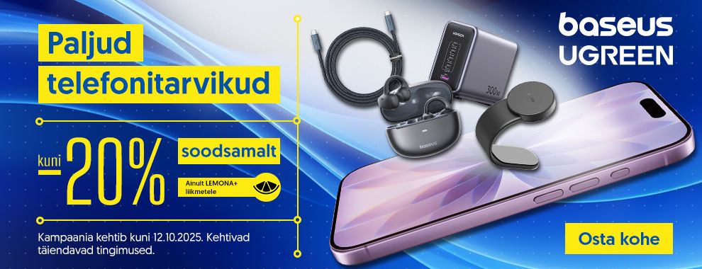 Igal sügisel tutvustab Apple uut iPhone’i ning LEMONA electronics kampaaniat, millega kutsub teid uuendama või soetama iPhone’i tarvikuid soodsama hinnaga. Uue iPhone 17 turuletoomise puhul pakume paljudele tarvikutele kuni -20%. Stabiilsust, ohutust ja funktsionaalsust tagavad kinnituslahendused (ka maastikusõidul), erinevad laadijad, akupangad, USB-A ja USB-C kaablid ning kõrvaklapid maksimaalseks helinaudinguks. Kampaania kestab vaid kuni 12. oktoobrini – ärge jätke võimalust kasutamata!